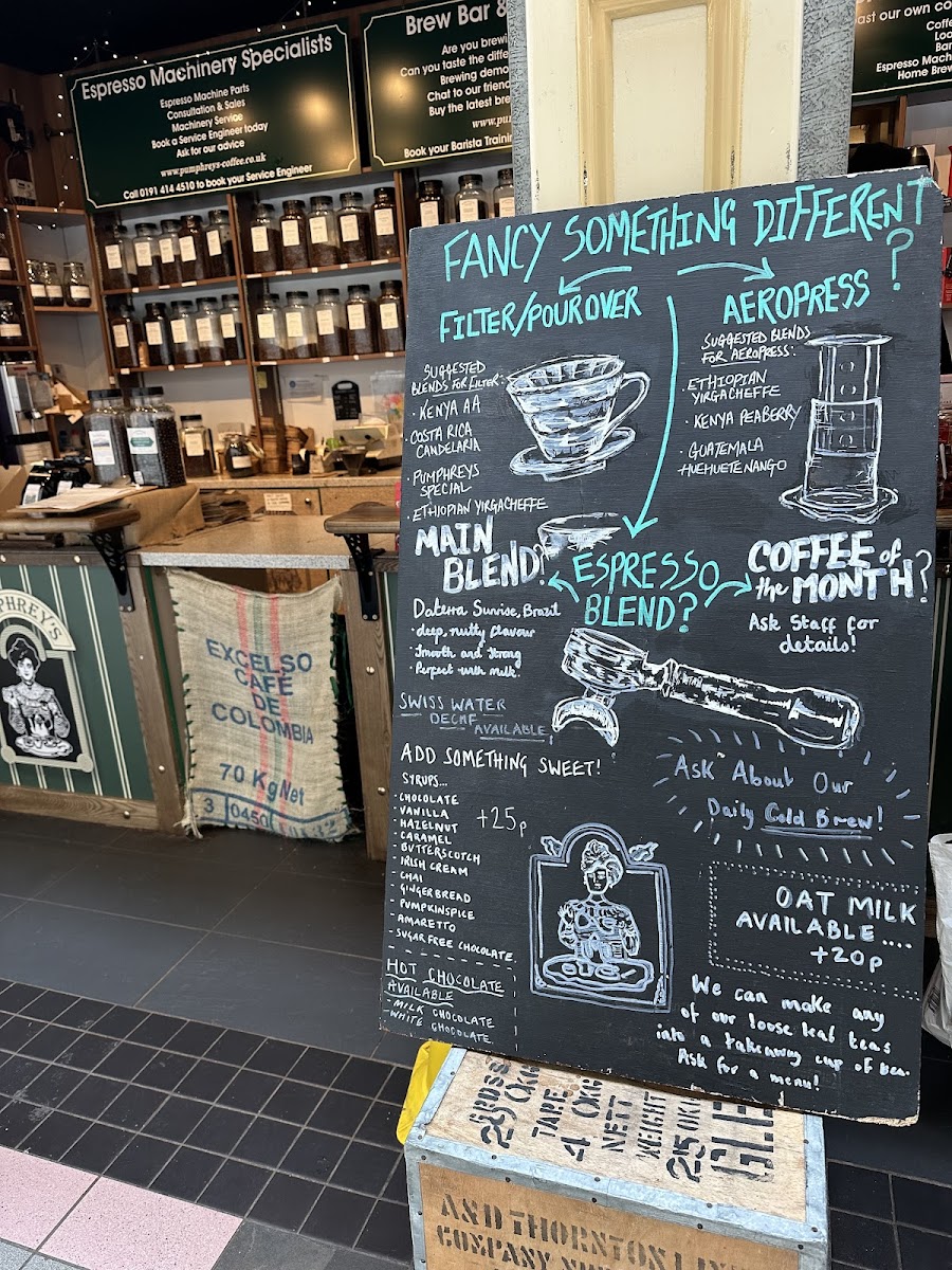Welcome to Pumphreys Coffee Centre and Brewing Emporium, a hidden gem nestled within Grainger Market, Newcastle upon Tyne. This charming coffee haven stands out with its extensive selection of high-quality coffee beans, showcasing unique blends and offering daily specials for you to savor.